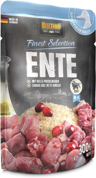 BELCANDO Ente mit Reis und Preiselbeeren – Premium-Hundefutter im Frischebeutel – 12 x 125g oder 6x 300g