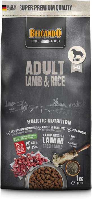 BELCANDO Adult Lamb & Rice – Für empfindliche Hunde mit normalem Energiebedarf - 1 kg, 4 kg oder 12,5 kg - Lamm und Reis