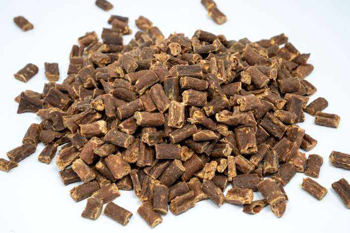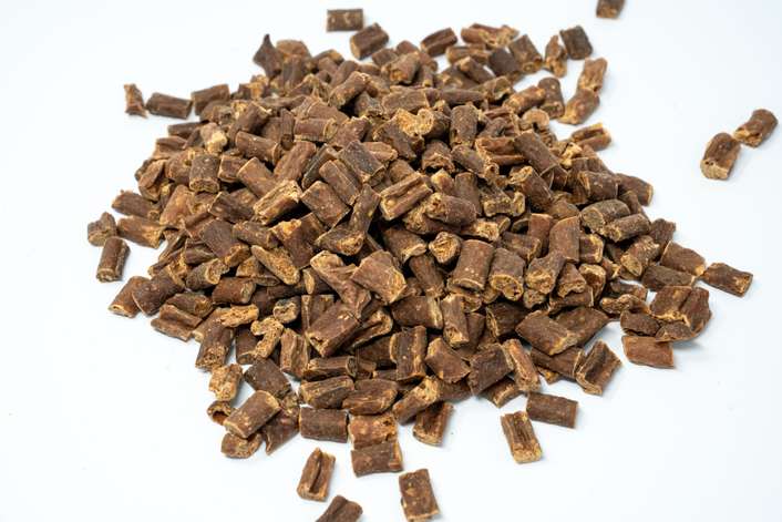 Die Leckerli werden in Lebensmittelqualität hergestellt und ohne Konservierungsstoffe getrocknet. Durch das besonders schonende Verfahren bleibt ein großer Teil der natürlichen Nährstoffe erhalten.