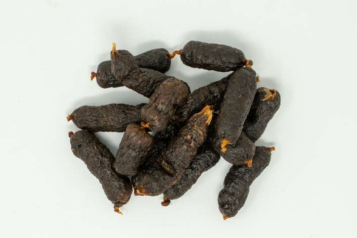- Die Straußenwürstchen sind bewusst etwas härter, um die Kaumuskulatur zu fördern und den natürlichen Kautrieb zu unterstützen.