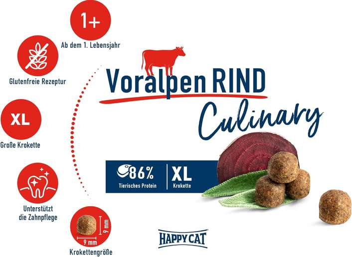 Happy Cat Culinary Adult Voralpen Rind - Trockenfutter für Katzen- Premium Katzenfutter - glutenfreie Rezeptur